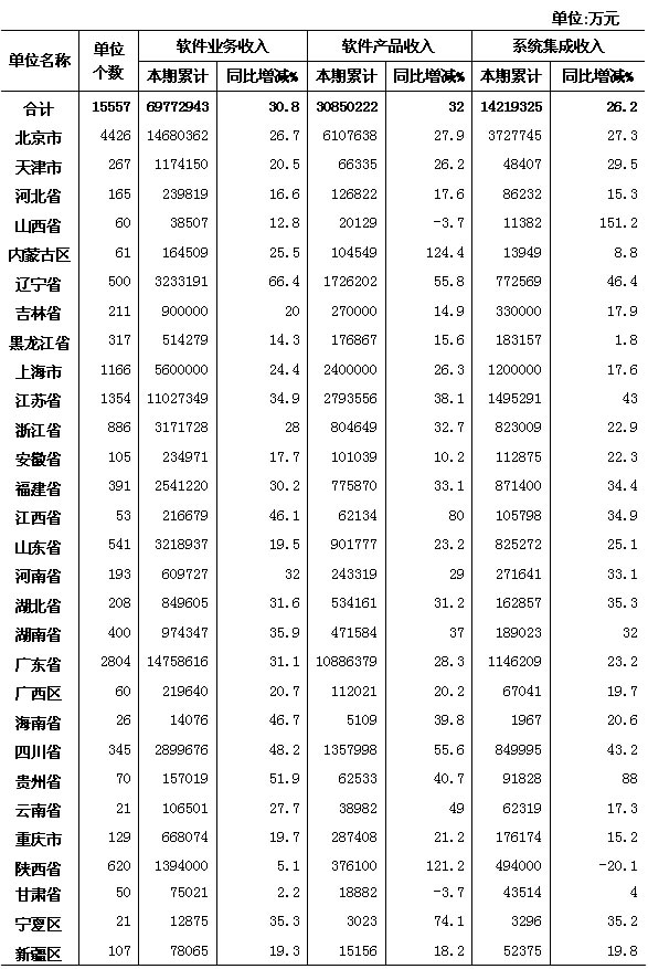2008年1-11月软件产业主要经济指标完成情况(一)