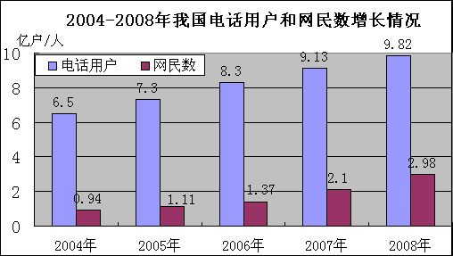 (七)信息化程度不断提高。全国电话用户9.82亿户,互联网网民2.98亿人,网络与用户规模均居世界第一。手机普及率达48.5%,城镇居民彩电和计算机拥有率分别达150%和60%。企业信息化应用不断深入,行业应用软件收入增速超过30%。