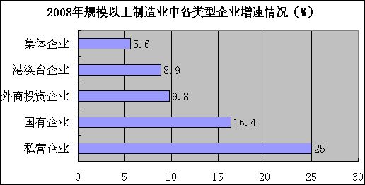 (三)区域发展出现不同格局。一方面,东部地区收入增长慢于中西部地区,东部地区规模以上制造业全年增长11.8%,分别低于中部(28.6%)和西部地区(31.6%)16.8和19.8个百分点。另一方面,东部地区增速下滑快于中西部地区,相比上半年,东部地区收入增速下降了7.8个百分点,但中西部地区分别下降2、1.2个百分点。北京、天津受奥运等多重因素影响,收入分别下降9.4%和10.5%;四川地震灾区生产恢复迅速,收入增速高达35%。