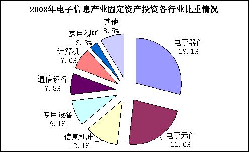 (六)固定资产投资快速增长。全行业500万元以上投资项目累计完成投资3527.8亿元,同比增长33.3%;新增固定资产1942.5亿元,增长31.5%;新开工项目3143个,增长13%;新开工项目计划投资额2254亿元,下降2.1%。电子元器件仍是产业投资的重点领域,所占比重超过50%。