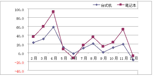 图2 2008年1-12月我国微型计算机每月生产增速情况