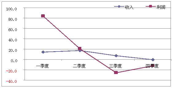 图4 2008年我国计算机行业每季度收入、利润增速情况