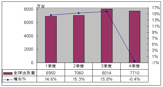 图5 IDC调查的2008年全球计算机每季度出货情况
