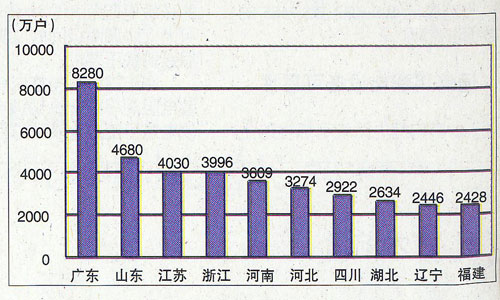图10.2009年1月移动电话用户排名前十的省份