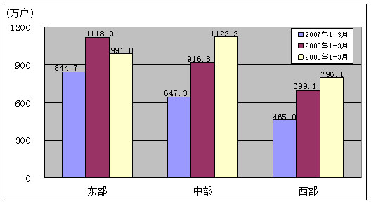 2009年1-3月,中、西部地区电信固定资产投资比上年同期分别增长11.0%、23.0%,明显高于东部地区的4.8%。