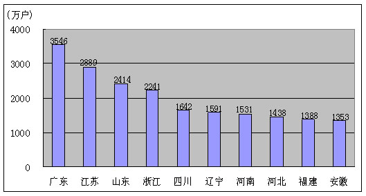 2.固定电话用户排名前十名的省份