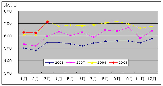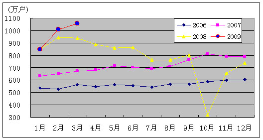 图3. 2006-2009年移动电话用户各月净增比较