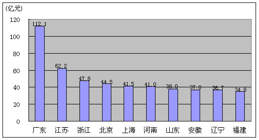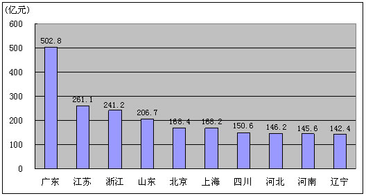 图12. 2009年1-5月电信主营业务收入排名前十名的省份