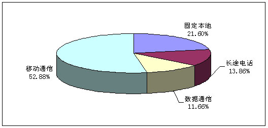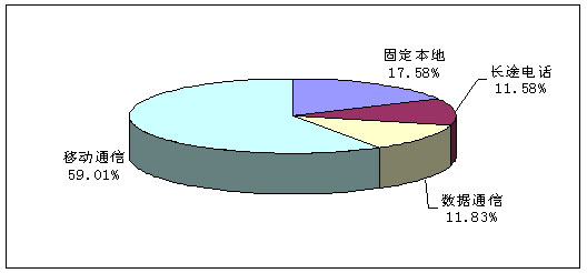 2009年1-5月,移动通信收入和数据通信收入比上年同期分别增长10.5%和7.2%,在电信主营业务总收入中所占的比重比上年同期分别上升了6.13和0.17个百分点。而长途电话业务收入和固定本地电话业务收入比上年同期分别减少11.7%和14.0%,在电信主营业务总收入中所占的比重比上年同期分别下降了2.28和4.02个百分点。