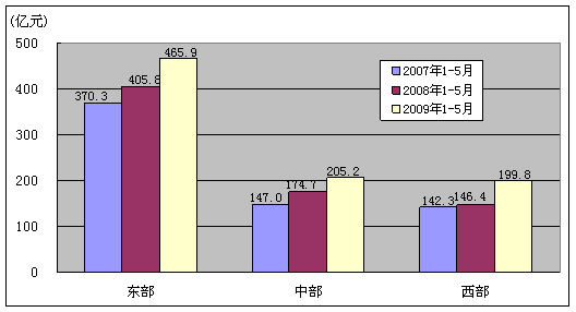 2009年1-5月,西部地区电信固定资产投资比上年同期增长36.5%,明显高于东、中部地区的14.8%、17.4%。