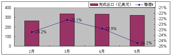 图2 2009年1-5月规模以上电子信息产品出口变化