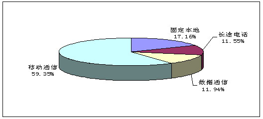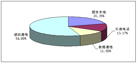 2009年1-7月份,移动通信收入和数据通信收入比上年同期分别增长11.0%和5.8%,在电信主营业务总收入中所占的比重比上年同期分别上升了4.46和0.35个百分点。而长途电话业务收入和固定本地电话业务收入比上年同期分别减少10.0%和13.4%,在电信主营业务总收入中所占的比重比上年同期分别下降了1.62和3.18个百分点。