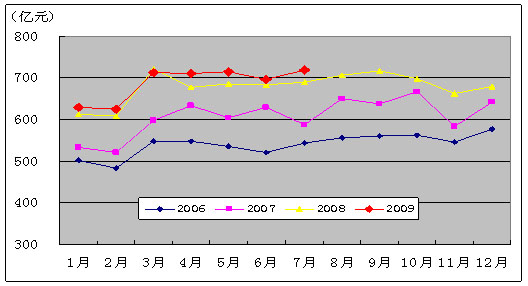 2009年1-7月份,全国电信业务总量累计完成14403.2亿元,比上年同期增长12.2%;电信主营业务收入累计完成4774.9亿元,比上年同期增长2.6%。