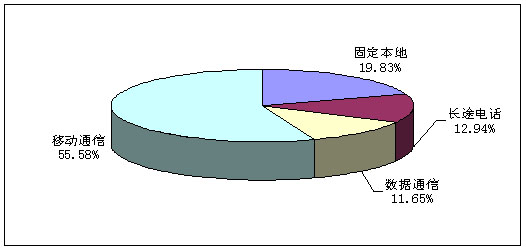 2009年1-9月份,移动通信收入和数据通信收入比上年同期分别增长11.6%和2.9%,在电信主营业务总收入中所占的比重比上年同期分别上升了4.56和下降了0.02个百分点。而长途电话业务收入和固定本地电话业务收入比上年同期分别减少7.8%和13.4%,在电信主营业务总收入中所占的比重比上年同期分别下降了1.37和3.18个百分点。