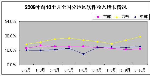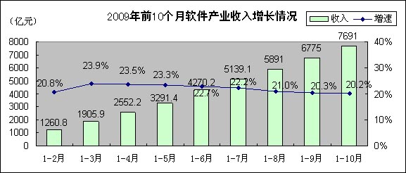 2009年1-10月,我国软件产业保持平稳态势,当月增速逐步回升,产业结构不断调整。主要特点如下: