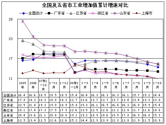 从单月情况看,6月起增速呈现下降趋势,10月当月仅增长9.9%,同月,江苏、山东、上海、浙江分别增长11.0%、8.0%、3.1%、2.2%。