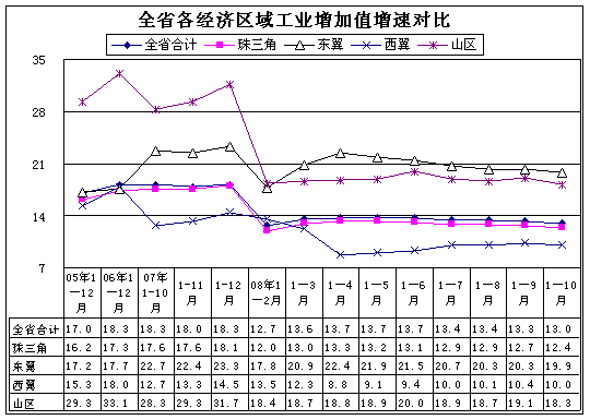 1-10月,东西北地区工业总量占全省比重由年底的16.8%,提高到17.9%。东翼、山区实现工业增加值同比增长19.9%、18.3%,增幅比全省水平分别高6.9、5.3个百分点。