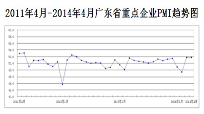 图1 2011年4月-2014年4月广东省重点企业PMI趋势图