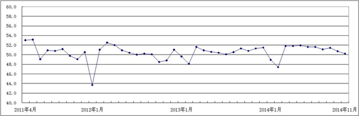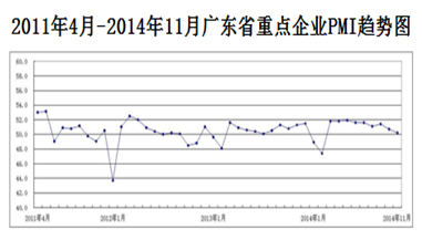 图1 2011年4月-2014年11月广东省重点企业PMI趋势图