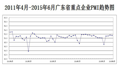 图1 2011年4月-2015年6月广东省重点企业PMI趋势图
