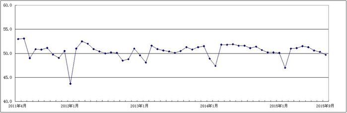 图1 2011年4月-2015年9月广东省重点企业PMI趋势图