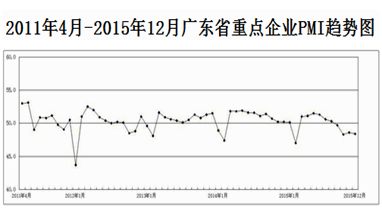 图1 2011年4月-2015年12月广东省重点企业PMI趋势图
