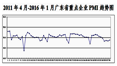图1 2011年4月-2016年1月广东省重点企业PMI趋势图