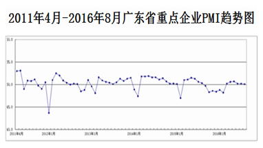 图1 2011年4月-2016年8月广东省重点企业PMI趋势图