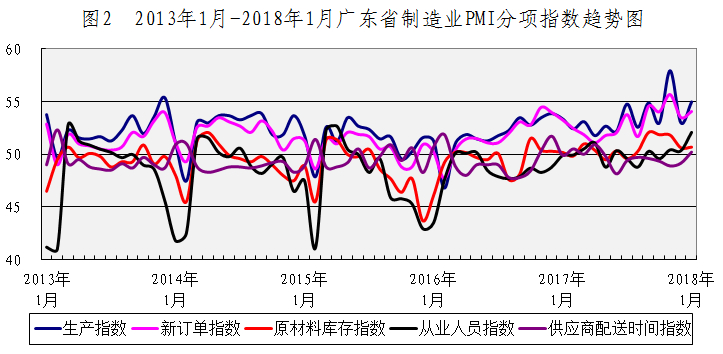表 2017年1月-2018年1月广东省制造业PMI主要分项指数值表