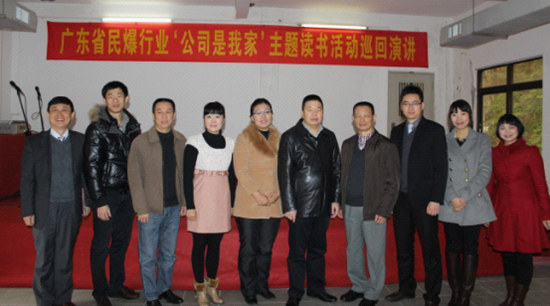 2013年1月6日至13日,广东省经济和信息化委、广东民用爆破器材行业协会组织了全省民爆行业“公司是我家”主题读书活动巡回演讲,先后在增城、惠州、兴宁、梅县、韶关、连南、罗定等地设立演讲点组织演讲。巡回演讲活动由广东民用爆破器材行业协会副秘书长李大林同志带队,演讲成员6名,全部都来自我省民爆行业第一线员工,活动行程2000余公里,参加演讲活动的领导和职工694人。