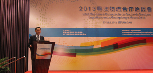 6月27日至28日,由广东省经济和信息化委和澳门特区政府物流业发展委员会共同主办的2013粤澳物流合作洽谈会在澳门隆重举行。广东省经济和信息化委党组副书记、巡视员戚真理,澳门物流业发展委员会副主席、立法会议员徐伟坤,以及来自粤澳两地物流界的120多名代表参加了盛会。
