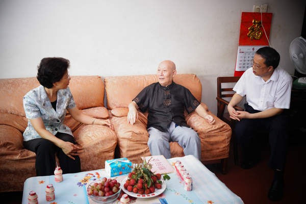 6月26日上午,“七一”前夕,省委常委、组织部长李玉妹与省委组织部副部长刘毅、省直机关工委书记李学同等一行到省经济和信息化委老党员、抗战老战士杨春泉家中进行慰问,为这位87岁老人送去党和政府的关怀和问候,委党组副书记、巡视员邹生参加慰问。
