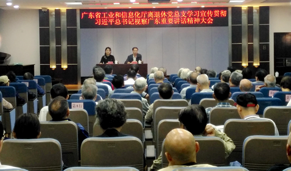 11月12日,快猫 离退休人员党总支组织5个支部共106人召开大会,传达学习宣传贯彻习近平总书记视察广东重要讲话精神。厅党组成员、副厅长郑勇明部署学习贯彻意见。