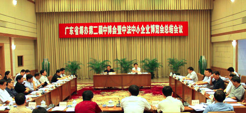 会上,广东省经贸委刘焕泉副主任代表筹办会办公室作了广东筹办第二届中博会联席会议工作总结。联席会议各成员单位针对筹办第二届中博会的成功经验和不足之处进行了仔细的研究分析,并对如何办好下一届中博会进行了热烈的讨论。与会代表认为,第二届中博会坚持“推介是前提,招展是基础,招商是关键,活动是亮点,服务是保证”的总体思路,精心策划、精心组织,圆满地完成了第二届中博会暨中法中小企业博览会的筹备工作。在总结本届中博会经验的基础之上,继续探索中博会向国际化、市场化、专业化迈进的道路,把中博会打造成为一个在国内外享有盛誉的品牌盛会。
