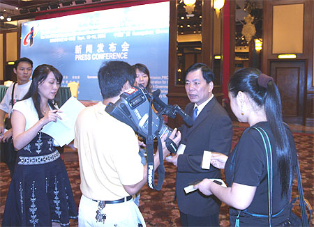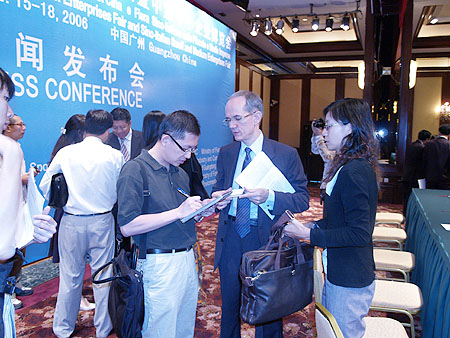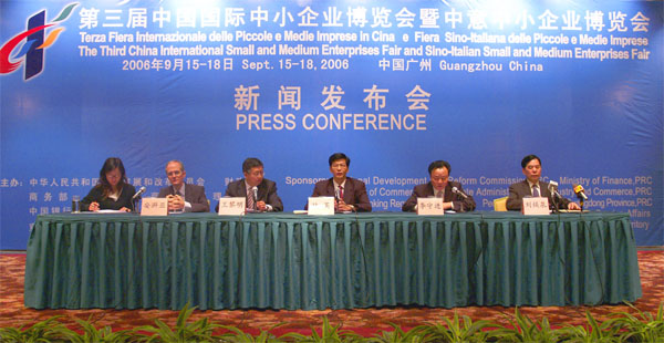林英秘书长在会上高兴地向新闻媒体宣布:第三届中国国际中小企业博览会暨中意中小企业博览会,经过近一年的紧张筹备,现各项准备工作已经就绪,将如期于2006年9月15至18日在中国广州琶洲国际会议展览中心举行!