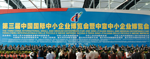 曾培炎、张德江、黄华华、普罗迪等出席了广东省人民政府与意大利工业家 联合会加强中小企业合作备忘录签署仪式并见证了签字 9月15日上午,第三届中国国际中小企业博览会暨中意中小企业博览会在广州国际会展中心隆重开幕。开幕式由第三届中博会暨中意中小企业博览会组委会副主任、国家发改委副主任欧新黔主持。中博会组委会主任、广东省省长黄华华,意大利共和国国际贸易部部长波尼诺分别致辞;国家发改委常务副主任陈德铭代中博会组委会主任、国家发改委主任马凯致辞。出席开幕式的还有国家有关部委领导,广东省有关领导,意大利共和国驻华大使孟凯帝等有关人员。 开幕式之前,普罗迪,曾培炎、张德江等出席了广东省人民政府与意大利工业家联合会加强中小企业合作备忘录签署仪式并见证了签字。广东省副省长佟星、意大利工业家联合会主席蒙特泽莫罗分别在备忘录上签字。 随后,曾培炎副总理宣布第三届中国国际中小企业博览会暨中意中小企业博览会开幕,并和普罗迪总理一起为中博会剪彩。 在这届中博会上有18个国家和地区的3000多家中小企业前来参展,其中国际和港澳台地区参展企业1000多家,展位5000多个,超过了原定5000个展位的目标。其中境内展区展位4016个,境外展区展位1094个,境外展区中意大利企业展位和洽谈区展位800多个。第三届中博会按行业布展,突出专业特色,设食品药品、陶瓷建材、电子信息、机械装备、家用电器、家具灯饰、鞋帽箱包、纺织服装、玩具工艺品、金融融资业、担保行业、中小企业服务业等12个行业展区和国际、港澳台、意大利等3个展区。与意大利企业的合作是这届中博会重头戏,也是亮点之一。意大利素有“中小企业王国”之称,其98%以上的公司都属于小企业。而在我国经济增长强劲的“珠三角”和“长三角”区域,一大批中小企业集群和专业镇也已经形成。两国的中小企业在产业分布和集群形态上,中国和意大利的中小企业群有很多相似之处,比如融资体系、专业化的中介服务等。在此次中博会上,意大利的中小企业将带了他们的经验,并将推出10个研讨会,55名来自意大利政府、学院、企业的代表将发表演讲,涉及的主题包括中小企业的技术转让,工业区,中小企业的技术创新等。 此外,在本届中博会上还将举办中意中小企业高峰论坛、中意中小企业合作项目推介洽谈活动、中小企业采购说明会、中小企业融资洽谈会、中小企业培训以及中小企业信息化论坛等活动。