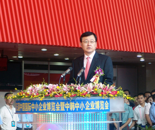 黄华华在致辞中表示,中小企业是经济社会发展中最活跃的因素之一。推动世界各国中小企业的交流和合作,实现互相共赢、共同繁荣,是中国政府的一贯主张,也是世界中小企业的迫切愿望。前四届中博会的成功举办,使中博会逐渐成为深受世界各国政府和广大中小企业欢迎的国际品牌,也向世界展示了中博会的无穷魅力。第五届中博会由中韩两国同期举办中韩中小企业博览会。韩国工业化基础雄厚,拥有众多发展前景好、水平高的中小企业,在发展中小企业方面具有许多成功经验。中韩两国中小企业互补性强、合作空间广阔。本届中博会还专设“亚欧中小企业合作交易馆”,亚欧会议45个成员首次集体亮相本届中博会,这将进一步增进世界各国中小企业间的交流与合作。