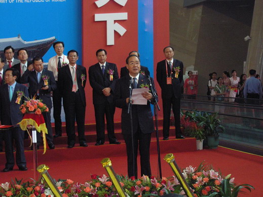 洪锡禹首先祝贺北京成功举办奥运会。他表示,从2004年首届中博会到本届中博会,参展企业无论在数量上还质量上的都有重大增长。中博会的发展很好地展现了中国的经济发展和广东省的发展,为亚洲国家乃至世界经济都做出了巨大的贡献。非常感谢中国政府让韩国在如此重要的博览会上成为主宾国,希望参加中博会的韩国企业为中韩人民之间的友好关系起到积极的推动作用。