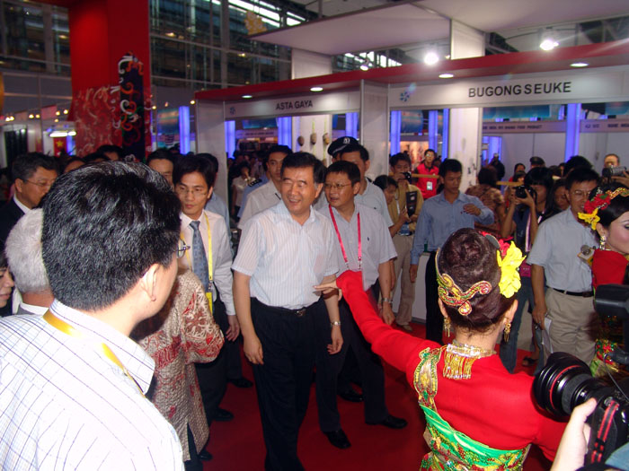 汪洋和省委常委、秘书长徐少华一起,在主办方有关负责人的陪同下,兴致勃勃来到会展中心,先后参观了博览会国际馆、亚欧馆、韩国馆和中小企业服务馆,并与参展客商交谈。韩国是本届中博会的主宾国,共有335家企业前来参展。汪洋代表广东省委、省政府对他们为中博会的顺利举办作出的努力表示感谢。他说,加强交流与合作使中韩两国的企业互利互惠,长期坚持下去,中韩两国包括广东的企业受益会更大。印尼这次派出了200多个代表团参展,还带来了民族风情舞蹈吸引客商。汪洋高兴地坐下来品尝他们的传统美食,仔细听取了客商们的意见和要求。他对印尼的企业家们说,他刚从印尼访问回来,广东与印尼有着非常广阔的合作前景。在西班牙客商的展位前,气氛格外热烈。客商们对本届博览会的组织表示非常满意,并对西班牙明年将作为主宾国与中国一起举办下一届博览会充满期待。汪洋说,他同样期待西班牙明年成为博览会的主宾国,中小企业博览会作为亚欧会议的一个重要成果,要让它取得更大成效,还需要我们持之以恒的努力。目前世界中小企业普遍遇到一些困难,让我们一块努力战胜困难。参观中,汪洋一再叮嘱有关部门负责人,要为广大中小企业提供更多信息化等方面的服务。他满怀信心地说,在市场经济的激烈竞争中,中小企业有其特殊的优势,改革开放30年来,广东培育起来的中小企业的拼搏精神和适应市场经济的能力都比较强,是不会被当前的困难压倒的。