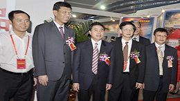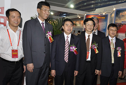中博会组委会秘书处副主任、省中小企业局局长张文献等陪同下巡视广东民企名品馆