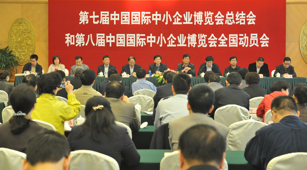 第七届中博会总结会和第八届中博会全国动员会于2011年4月14日在浙江省杭州市召开。中博会组委会秘书长、广东省政府副秘书长林英,中博会组委会秘书处主任、广东省经济和信息化委员会主任杨建初,中博会组委会秘书处副主任、工业和信息化部中小企业司司长郑昕出席会议并讲话。工业和信息化部、商务部、国家质检总局、中国银监会、广东省人民政府等主办单位的领导出席了会议。中博会组委会秘书处领导、各省(区、市)、新疆生产建设兵团中小企业主管部门分管领导及联络员、有关专业机构、行业协会负责同志等参加了会议。会议由工业和信息化部中小企业司副司长王建翔主持。