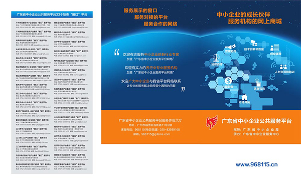 姚德洪 为帮助广大中小微企业可以便捷地找到信息、资金、技术、人才、法律等服务资源。经过近几年的努力,我省基本建立了省、市、县(区)三级的中小企业服务中心体系,搭建了“1+33+N”服务协同、形象统一、资源共享、覆盖广泛的一体化、开放式平台——广东省中小企业公共服务平台网络(www.968115.cn),中小微企业可以通过该平台找到合适的服务资源,同时我们正在加快完善平台建设,以便更好地满足企业服务需求。