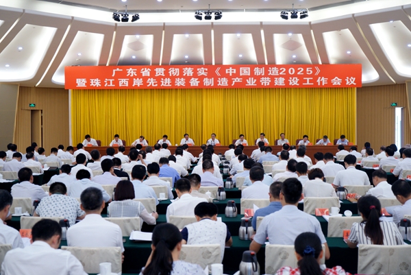 7月27日,省委、省政府在广州召开全省贯彻落实《中国制造2025》暨珠江西岸先进装备制造产业带建设工作会议。省委书记胡春华出席会议并讲话,强调要牢牢把握制造业这一立国之本的战略地位,抓住贯彻落实《中国制造2025》的机遇,大力发展装备制造、智能制造,努力掌握自主创新核心技术,实施创新驱动发展战略,推动广东由制造业大省向制造业强省转变。省长朱小丹出席会议并讲话。会议由省委常委、常务副省长徐少华主持,省领导马兴瑞、林木声、任学锋、刘志庚、许瑞生、邓海光,广州市市长陈建华,省直及中央驻粤有关单位负责同志,各地级以上市及顺德区有关负责同志,相关省级行业协会负责人,100家制造业典型企业负责人等参加会议。