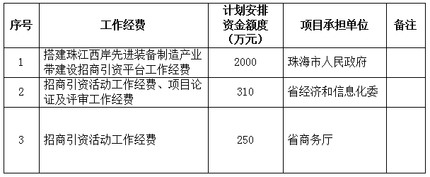 附件:珠江西岸先进装备制造业招商引资对接平台建设等重点工作经费项目计划表